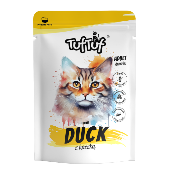 Hrana umeda pentru pisici adulte. 65% carne și produse de origine animală (inclusiv 6% rață), produse de origine vegetală, minerale. Componente analitice: Proteină brută – 11%, Grăsime brută – 5%, Cenușă brută – 2,2%, Fibră brută – 0,4%, Umiditate – 80%. Aditivi/1kg: Vitamina A (3a672a): 1800 UI, Vitamina D3 (3a671): 200 UI, Vitamina E (3a700i): 100 mg, Cupru (3b405): 3 mg, Mangan (3b503): 4 mg, Zinc (3b603): 20 mg, Iod (3b202): 0,4 mg.